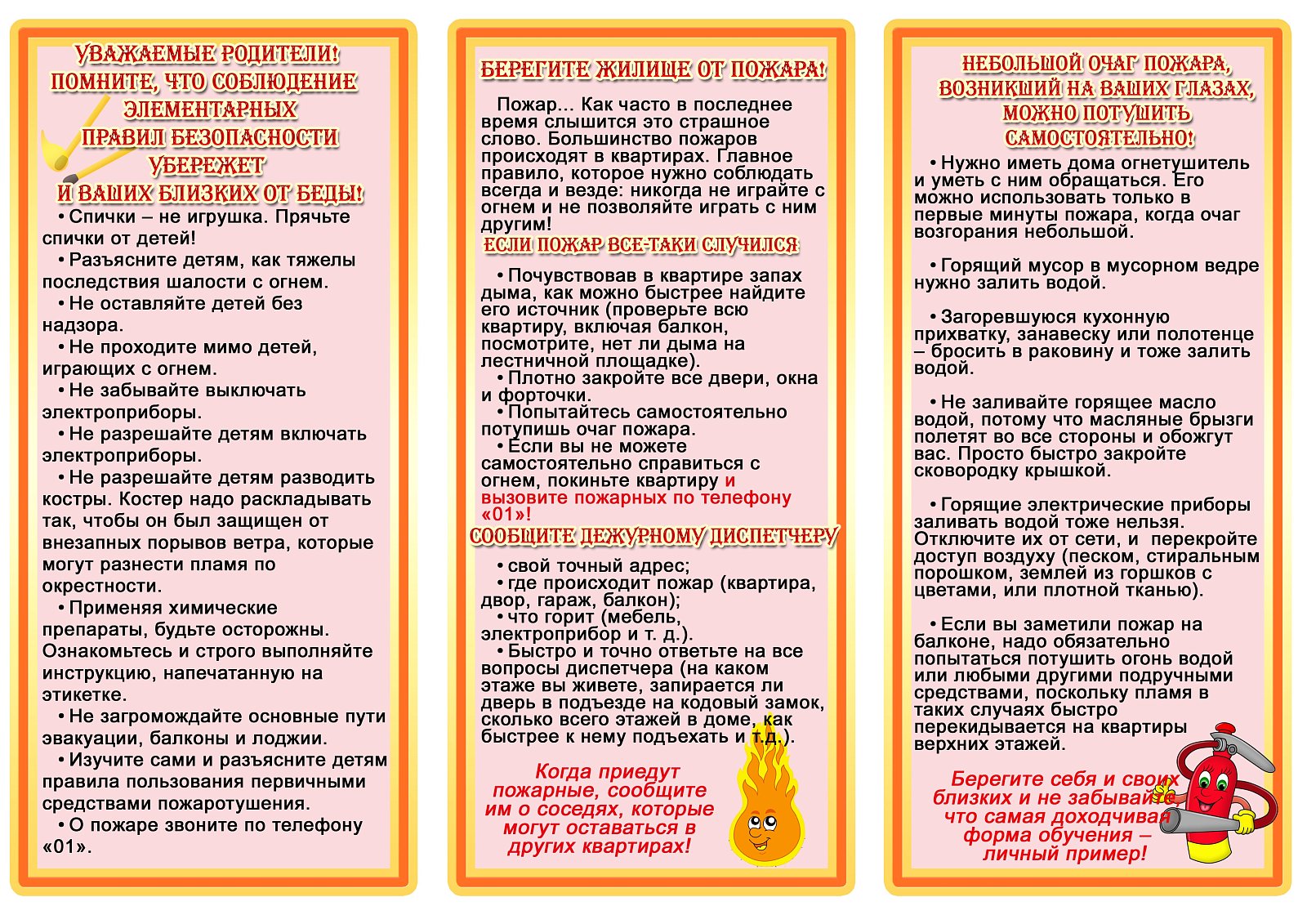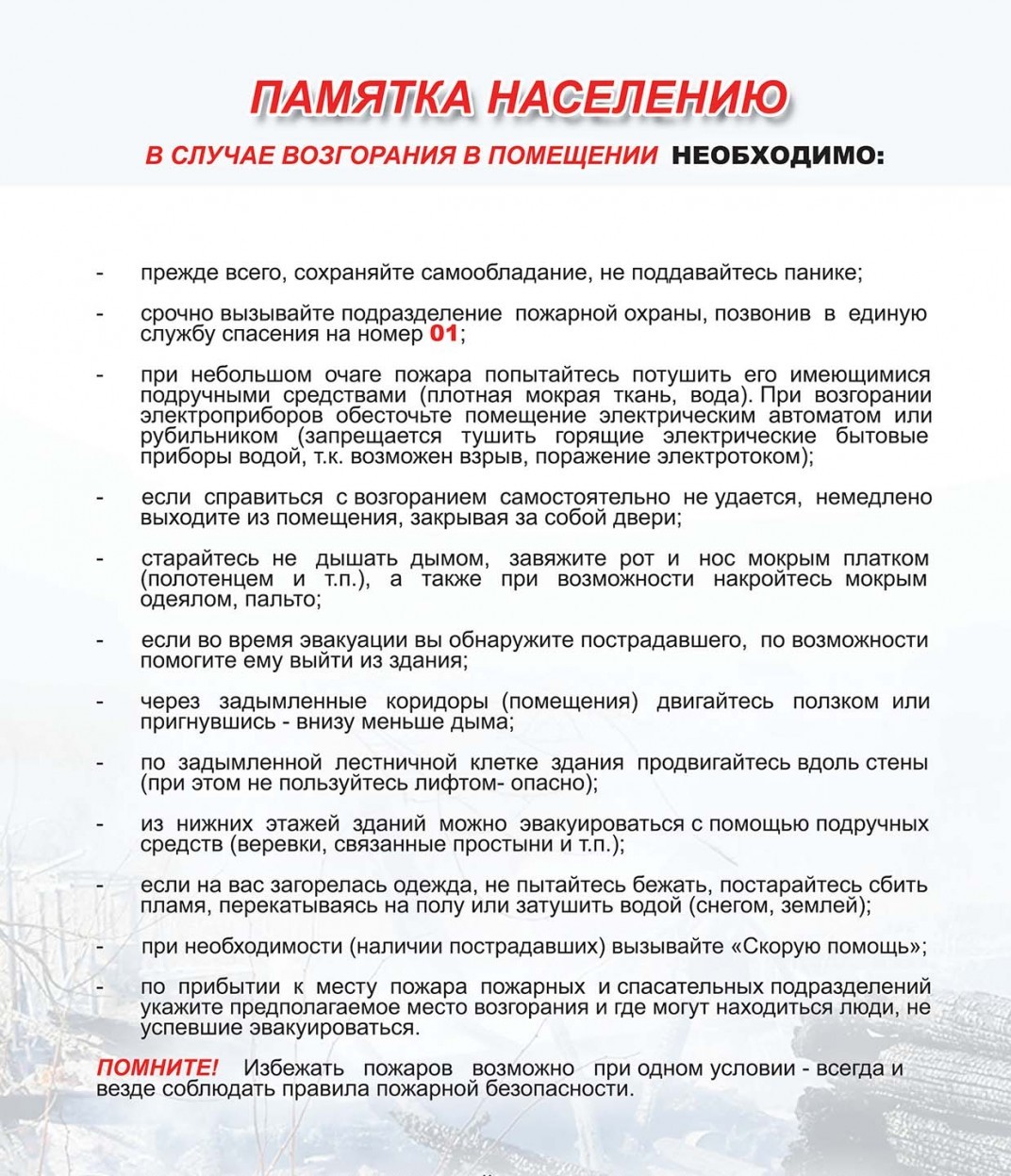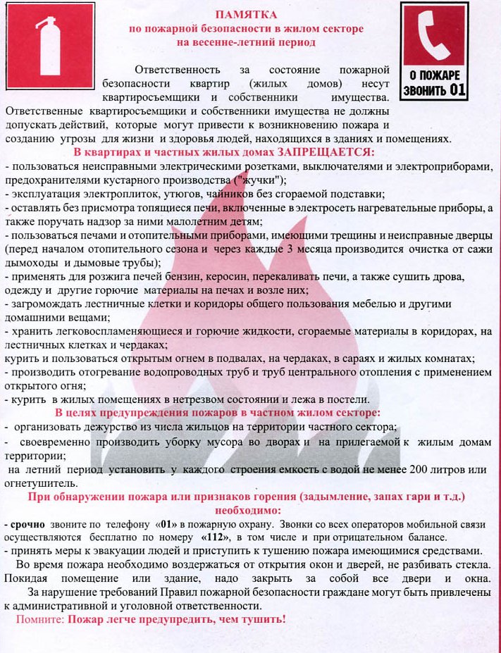 Памятки по пожарной безопасности
