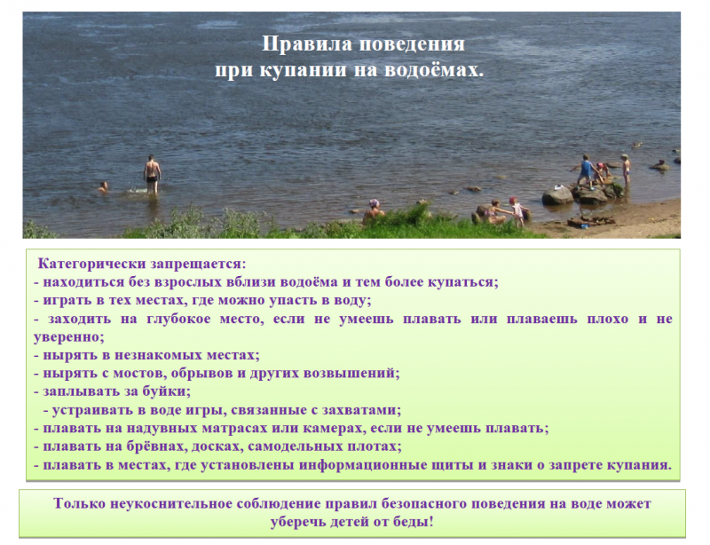 · не используйте при купании не предназначенные для этого предметы (доски, надувные автомобильные камеры и т. п.);