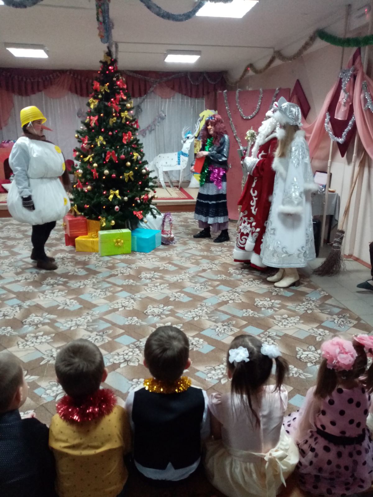 29 декабря в детском саду № 10 "Радуга" в группе "Подсолнушек" с. Смолино прошел новогодний праздник "Сундучок Домовенка Кузи". Дети пели, плясали, играли, читали стихи. Главными героями праздника стали Дед Мороз, Снегурочка, Баба-Яга, Снеговик и Домовенок Кузя. Всем было очень весело.