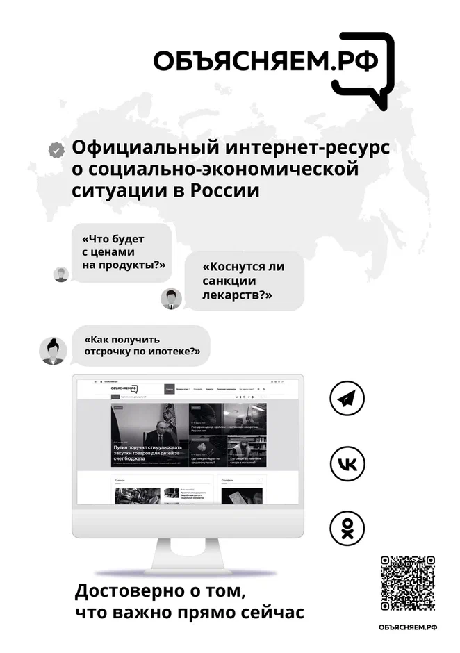 Правительством Российской Федерации для оперативного информирования о социально-экономической ситуации в стране запущен информационный портал ОБЪЯСНЯЕМ.РФ.