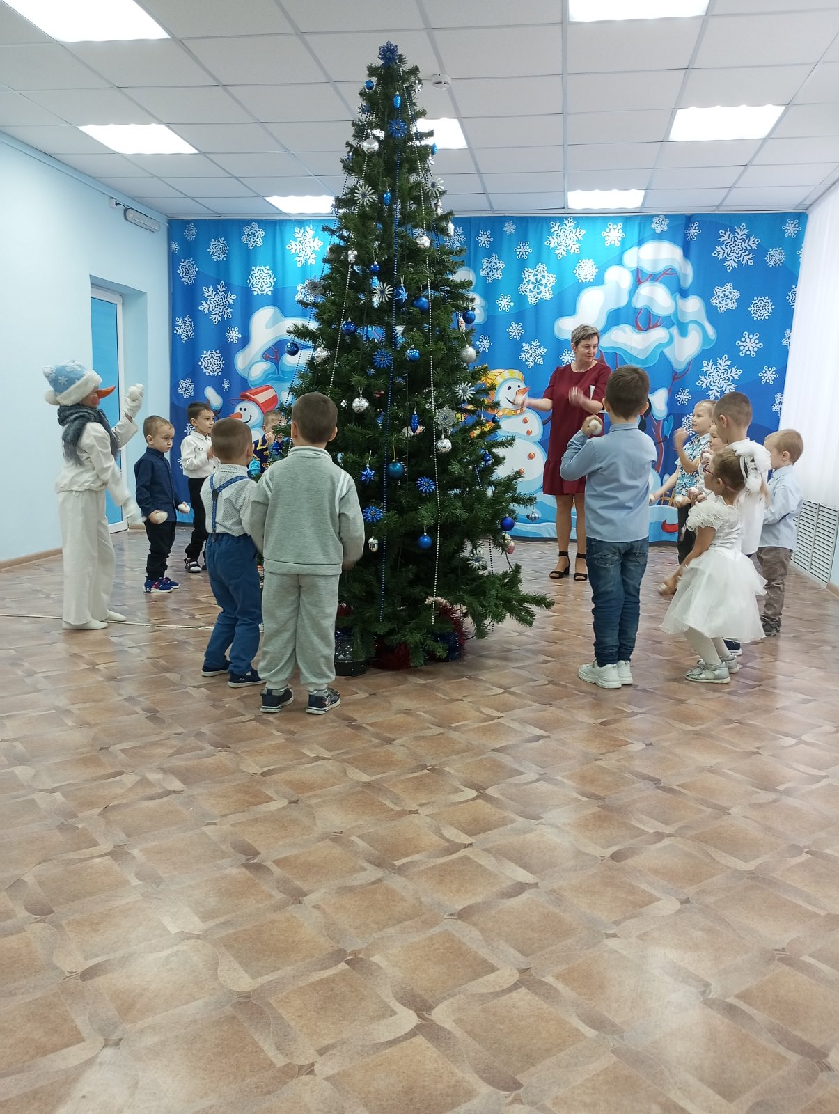 29.12.2023г среди воспитанников старшей группы «Капелька» МБДОУ детский сад №10 «Радуга» поселка Красный Октябрь был проведен Новогодний утренник у елки «Снеговик в гостях у ребят».