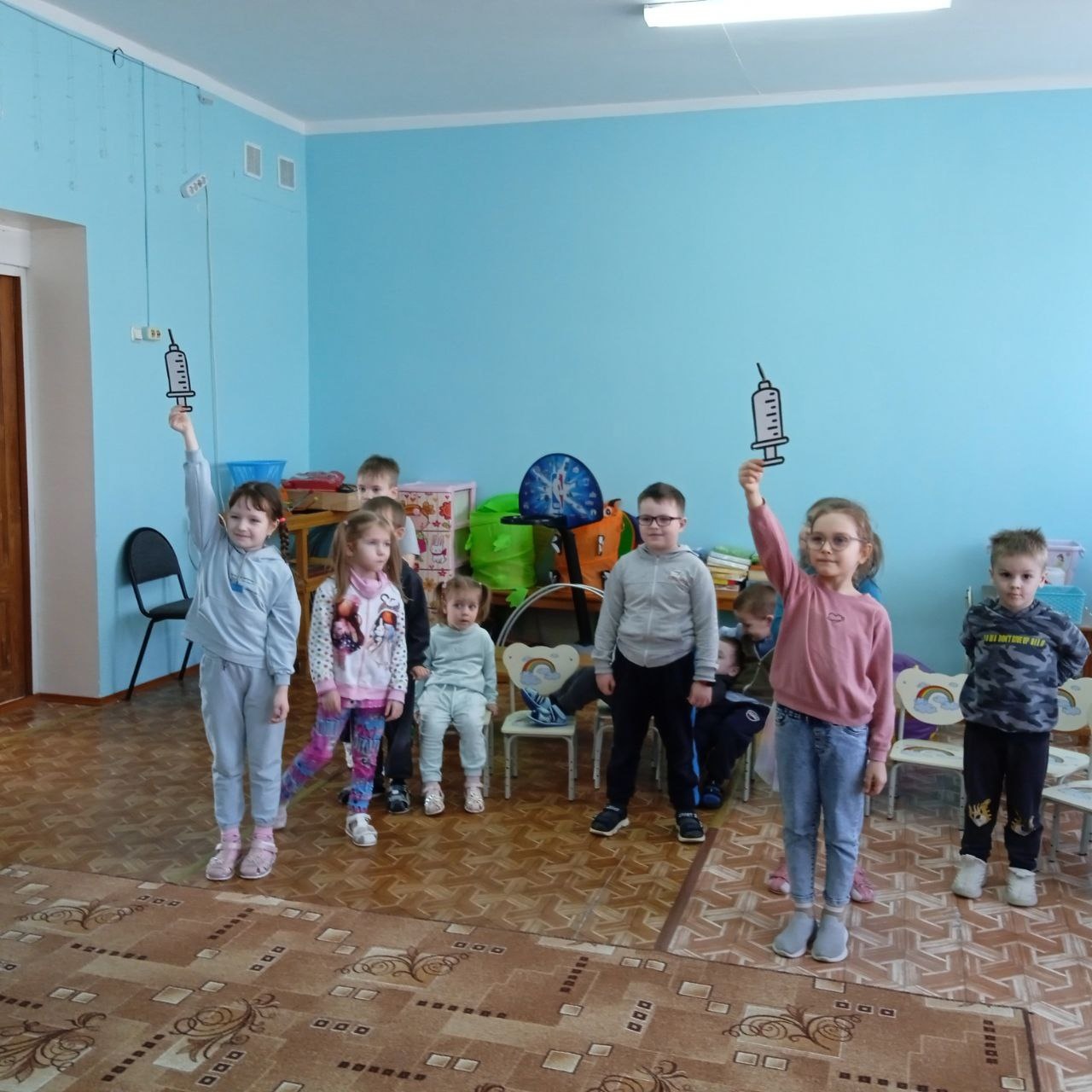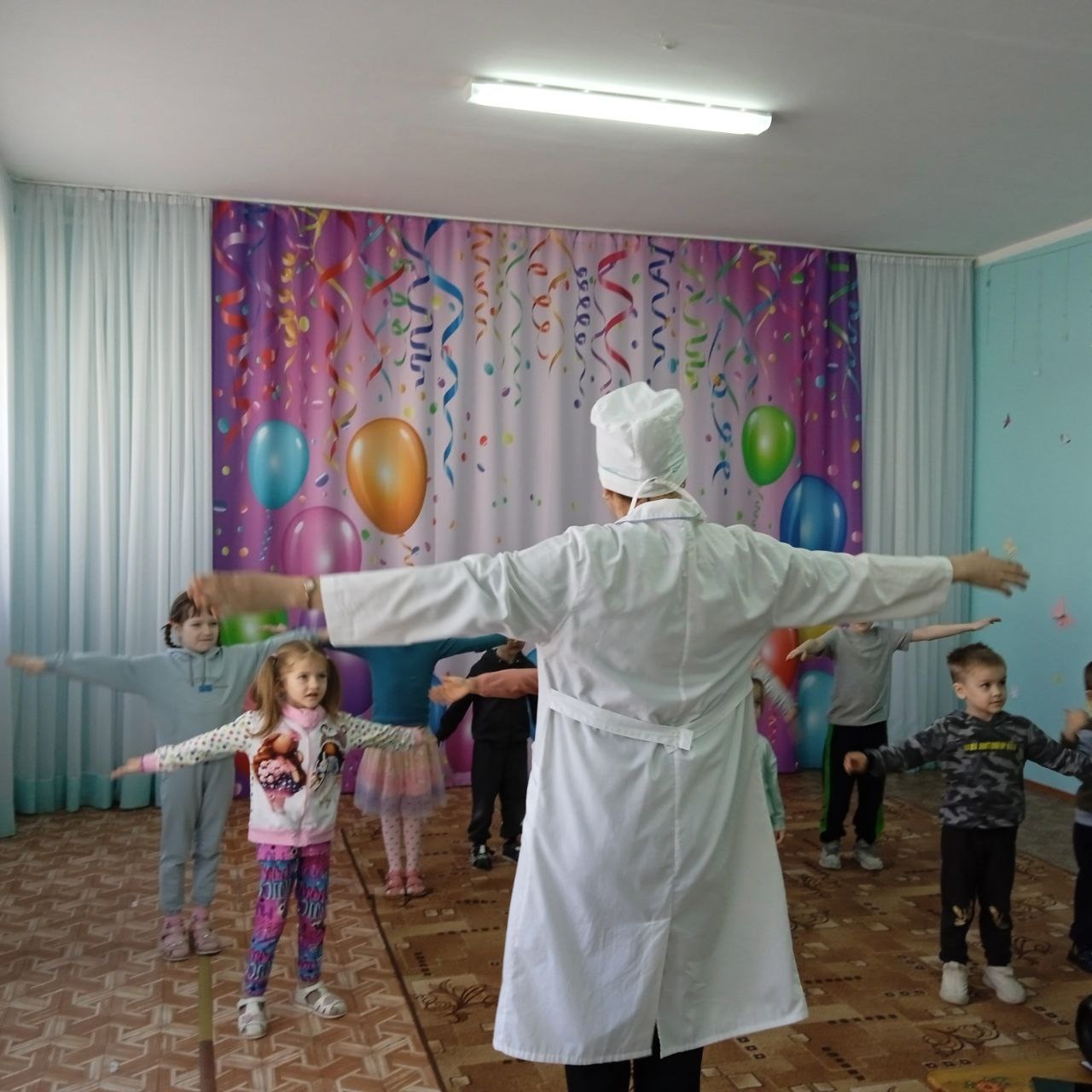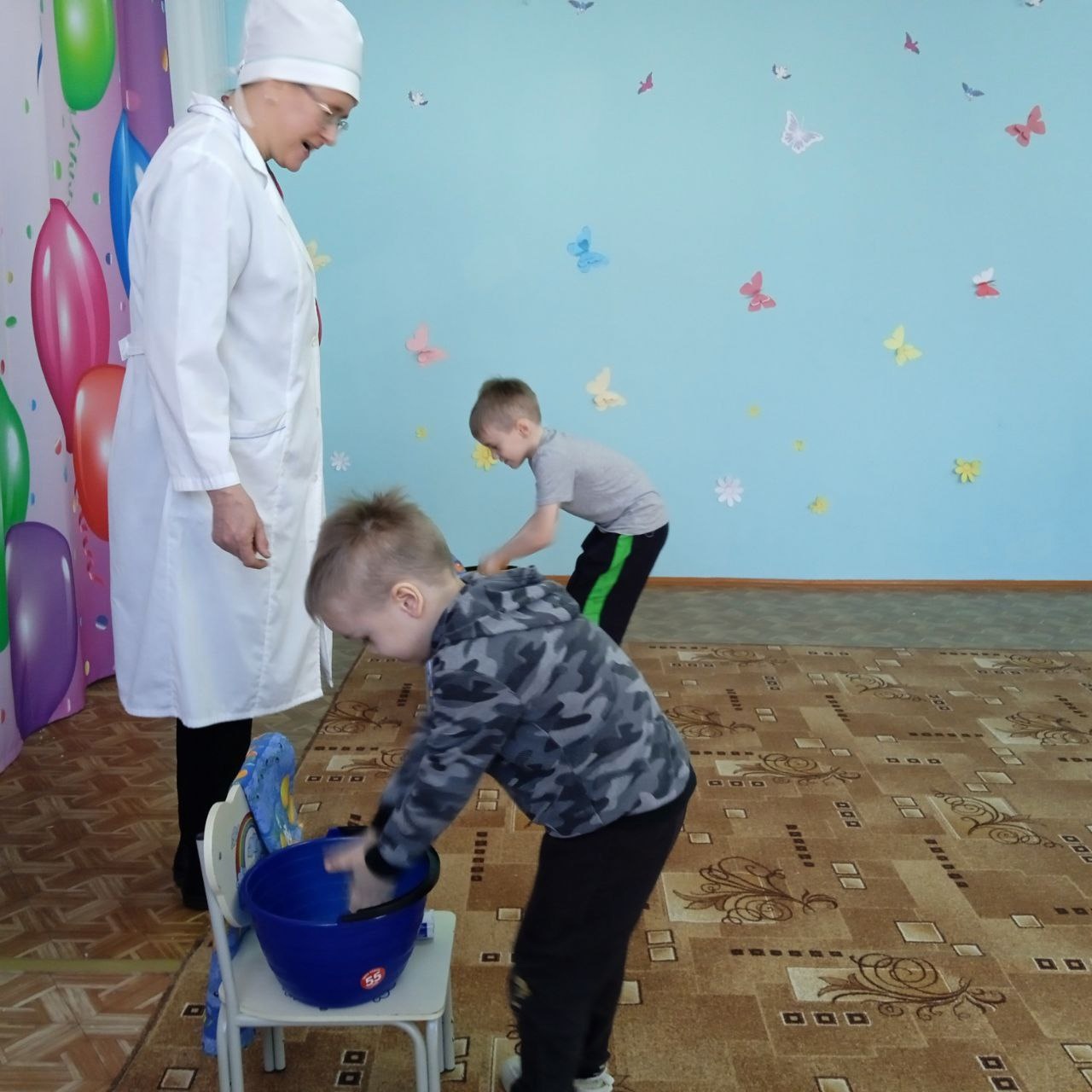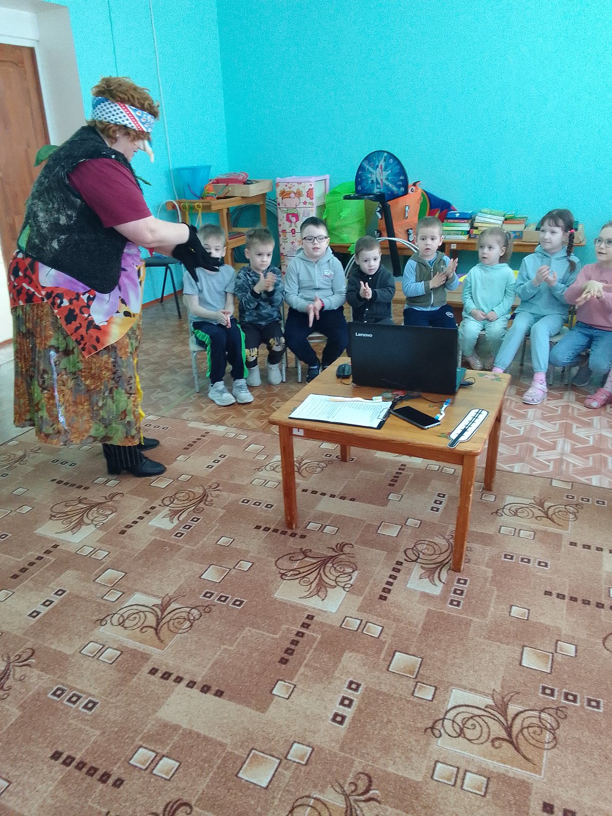В конце Доктор и Баба-Яга угостили ребят вкусными витаминками-леденцами и полезными фруктами – грушами.