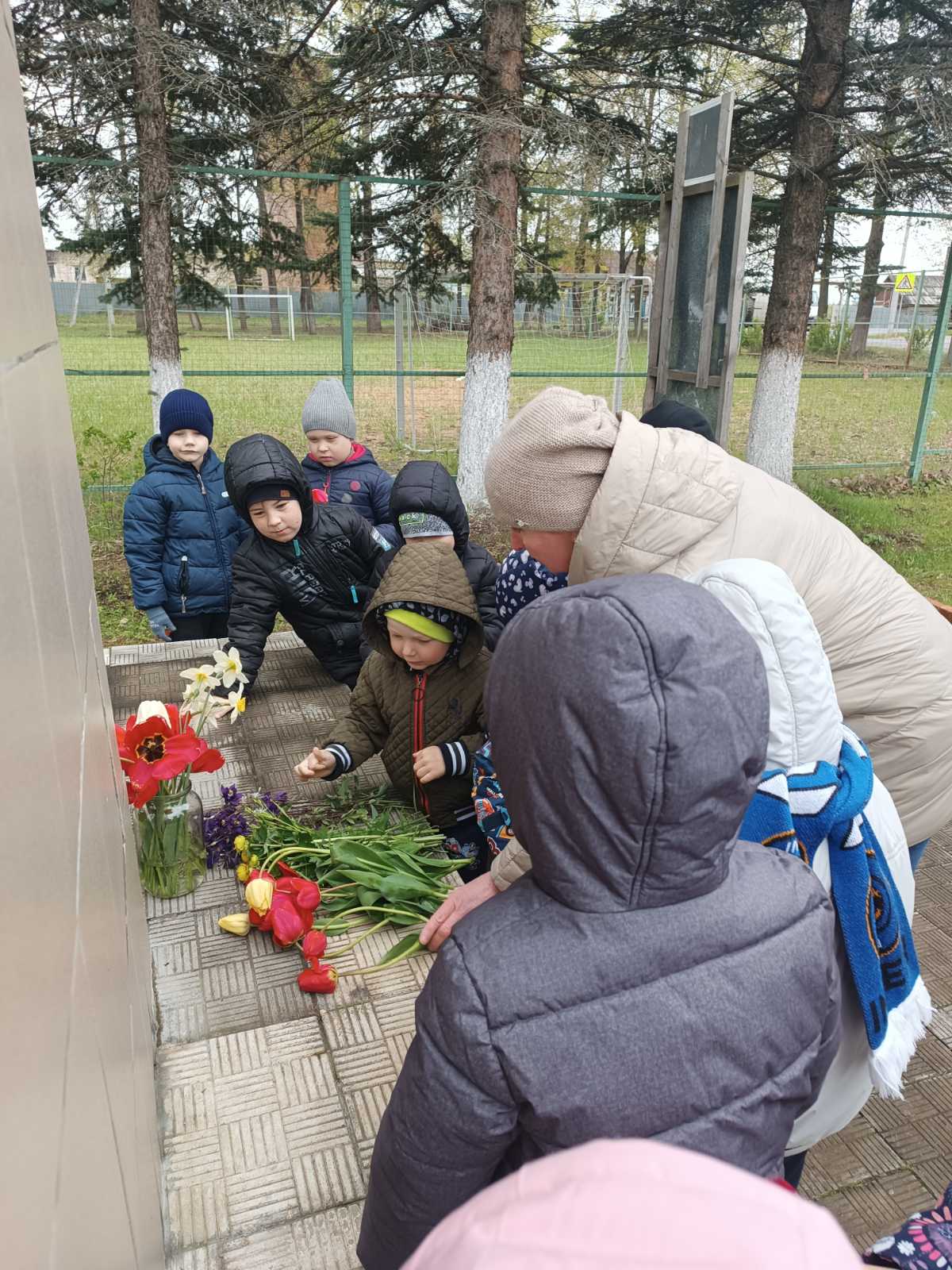 07.05.2023г воспитанники группы "Капелька" МБДОУ детский сад №10 "Радуга" совершили экскурсию к памятнику погибшим воинам в ВОВ "Сквозь года звенит Победа" и возложили цветы к обелиску.
