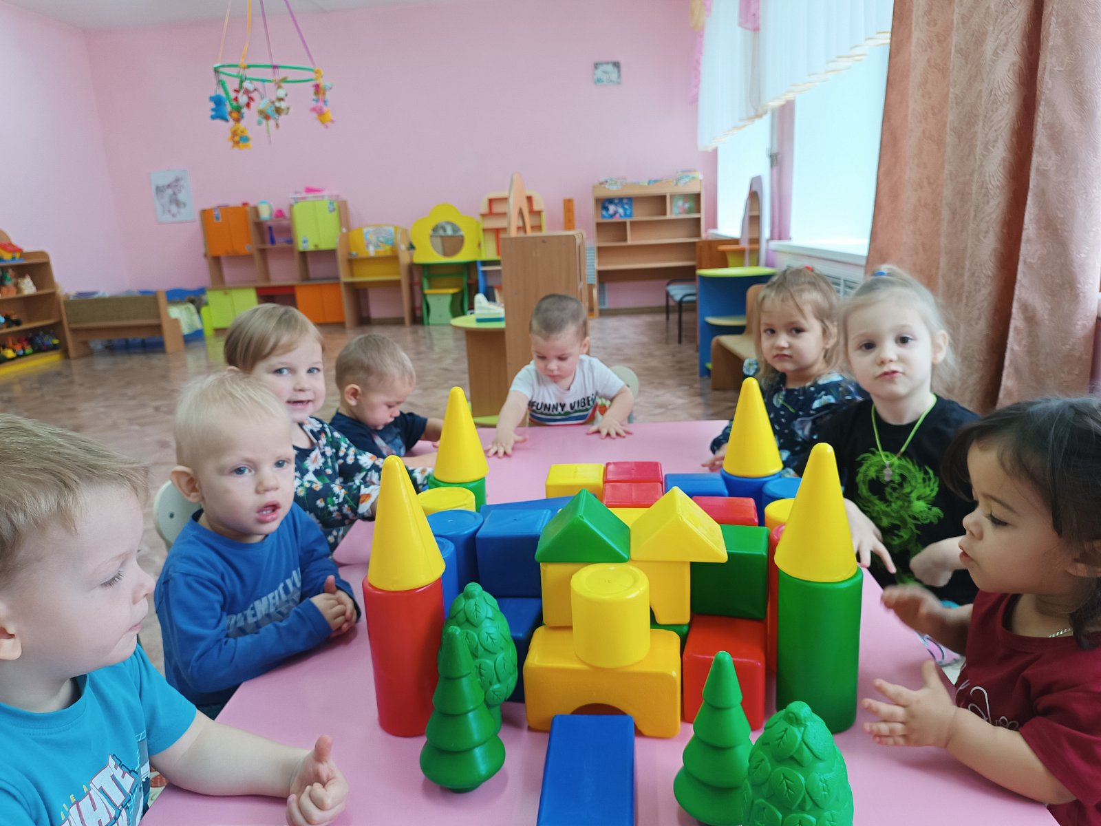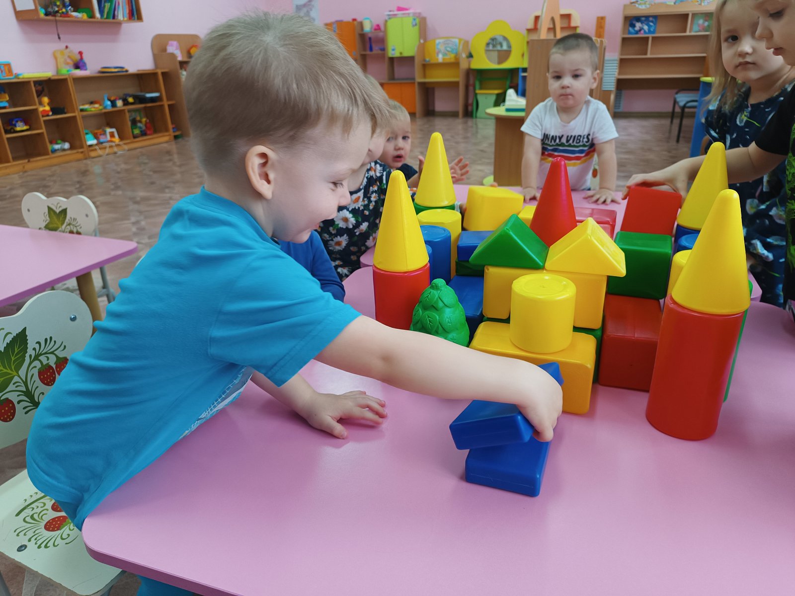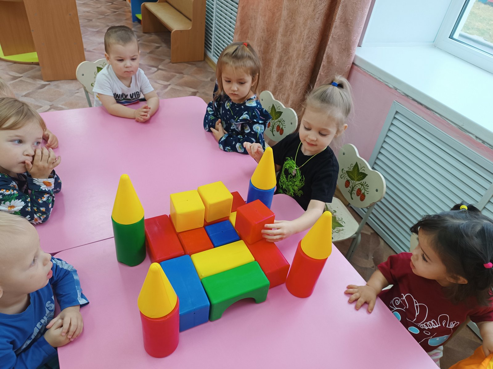 31.10.24 группа "Ягодка" Занятие по конструированию "Мы строим дом".Малыши повторили цвета, формы, счёт до пяти.Учились быть аккуратными и терпеливыми