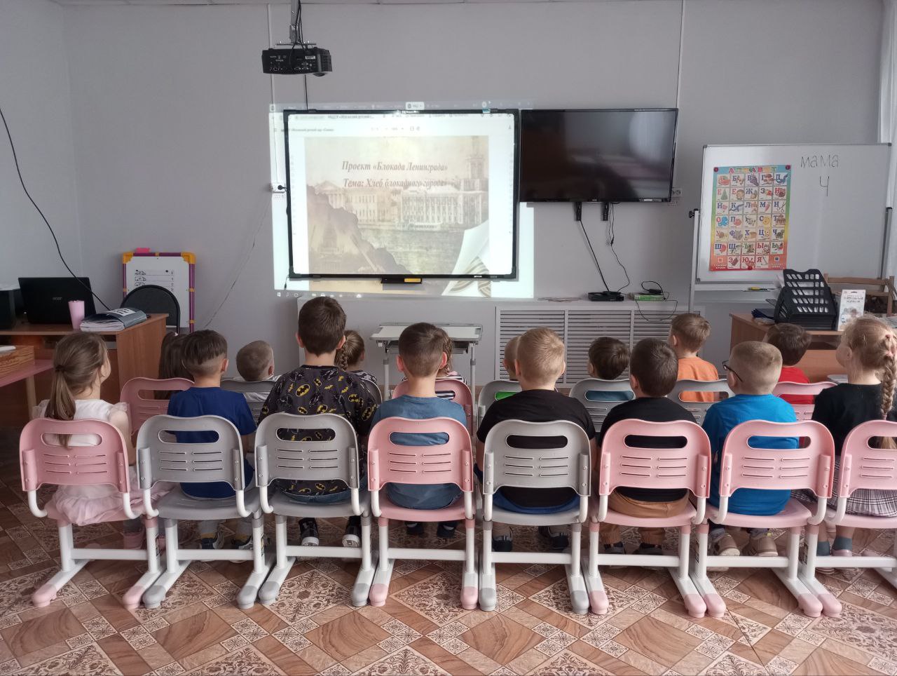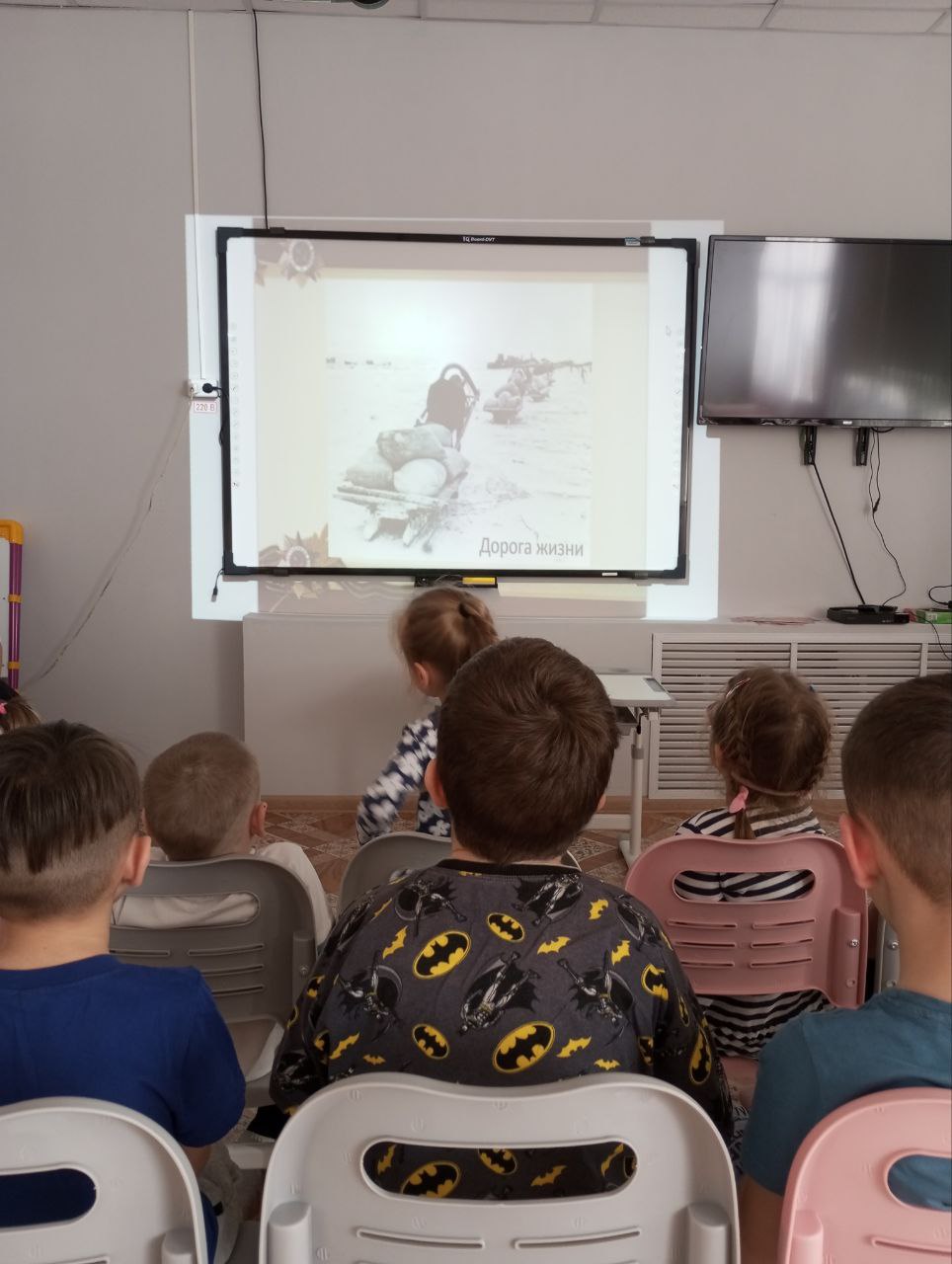 В ходе мероприятия с ребятами провели беседу под названием «Блокада Ленинграда». Они узнали о том, как люди выживали в те тяжёлые времена. Также дети услышали отрывок из песни «Вставай, страна огромная!» и звук сирены, который звучал в блокадном городе.