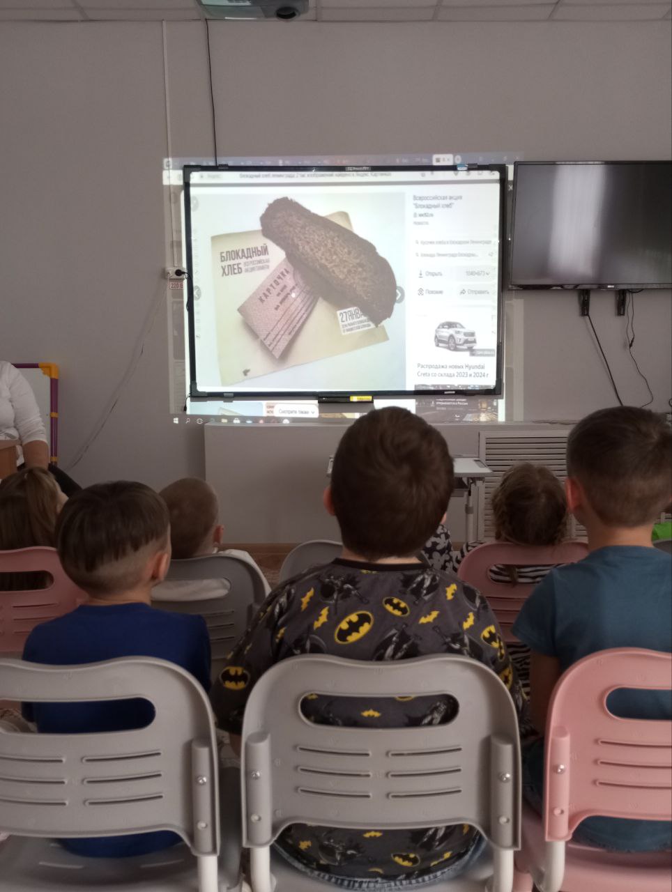 Видеоролик «Блокадный хлеб» вызвал у ребят неподдельный интерес и заставил их внимательно слушать.