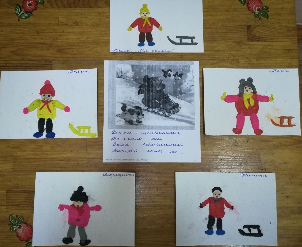 На кружке «Пластилинография» дети изобразили себя перед прогулкой.