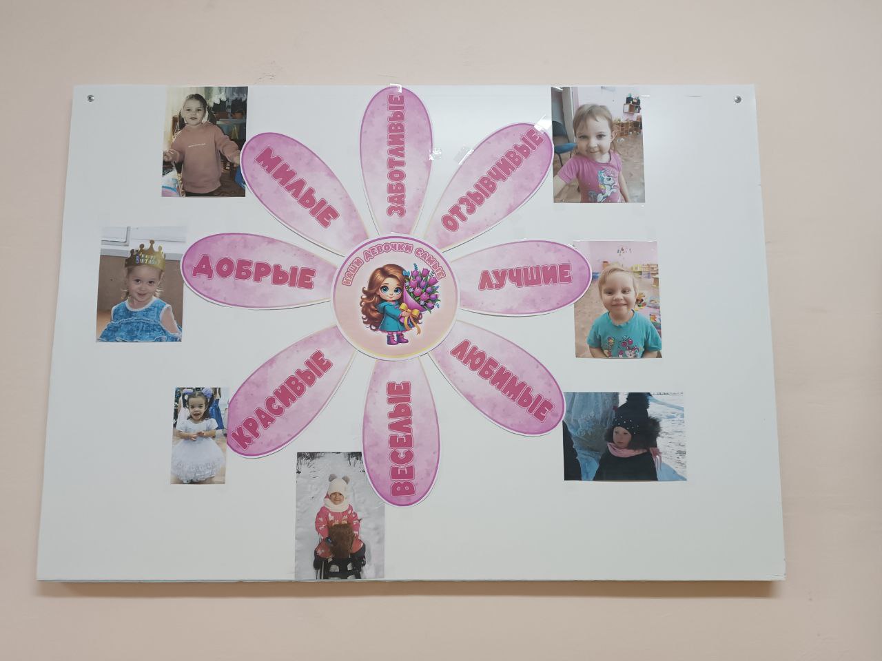 Воспитатели группы «Ягодка» подготовили поздравление для девочек к 8 Марта. Они оформили фотовыставку под названием «Наши девочки самые...».