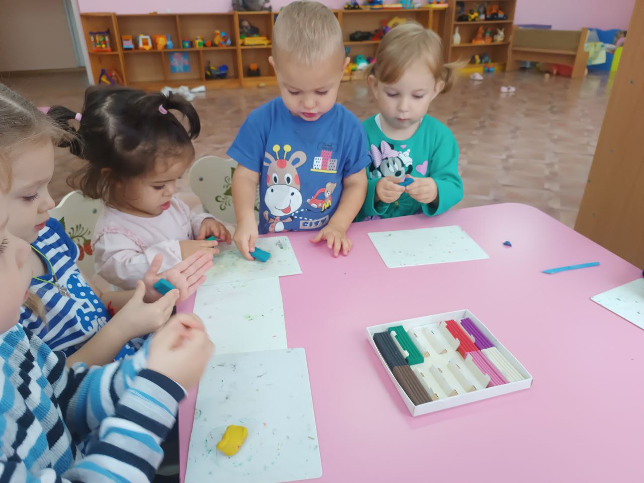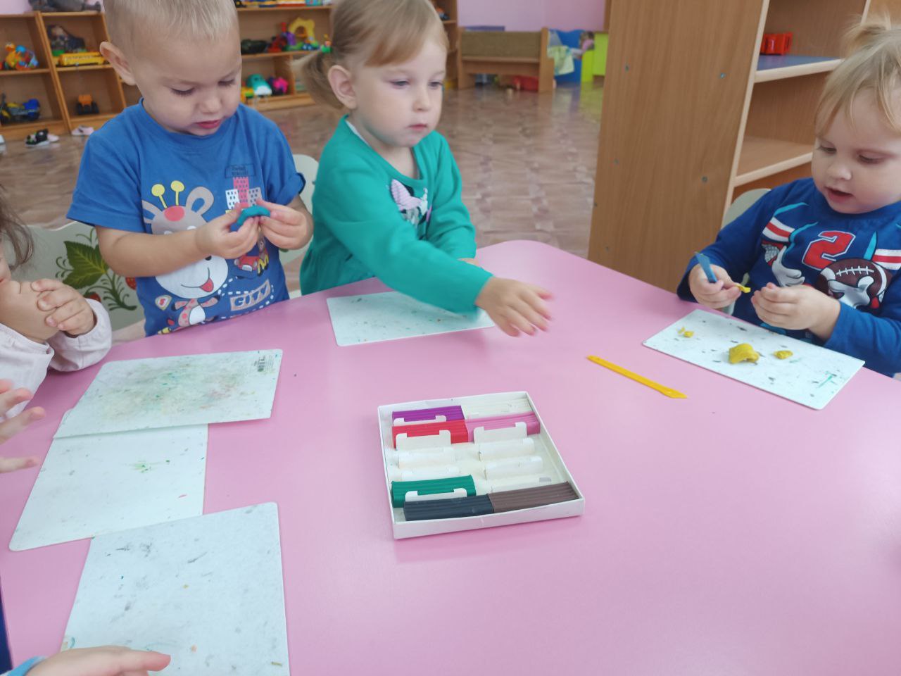 Сегодня малыши из группы «Ягодка» на занятии «Пластилин-волшебник» творили чудеса с пластилином. Они брали пластилин разных цветов и лепили из него простые фигурки. Дети экспериментировали с цветами и формами, создавая собственные композиции.