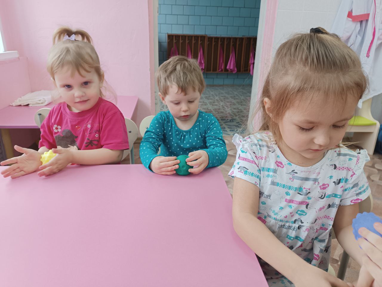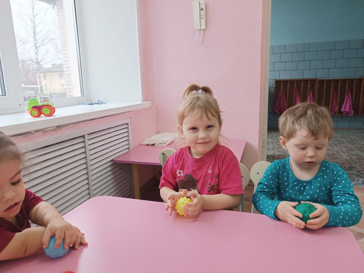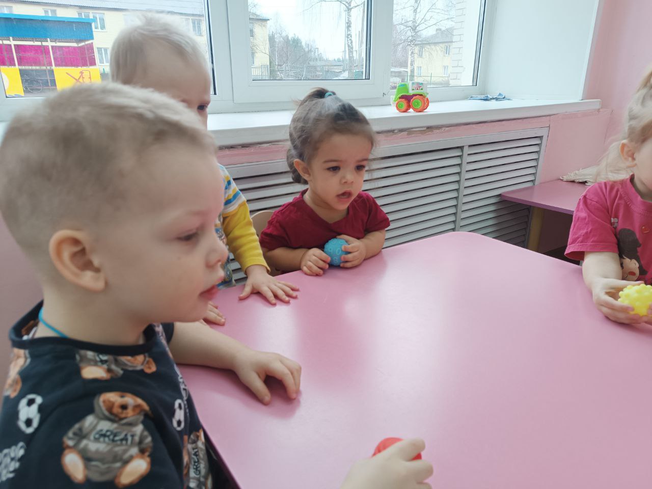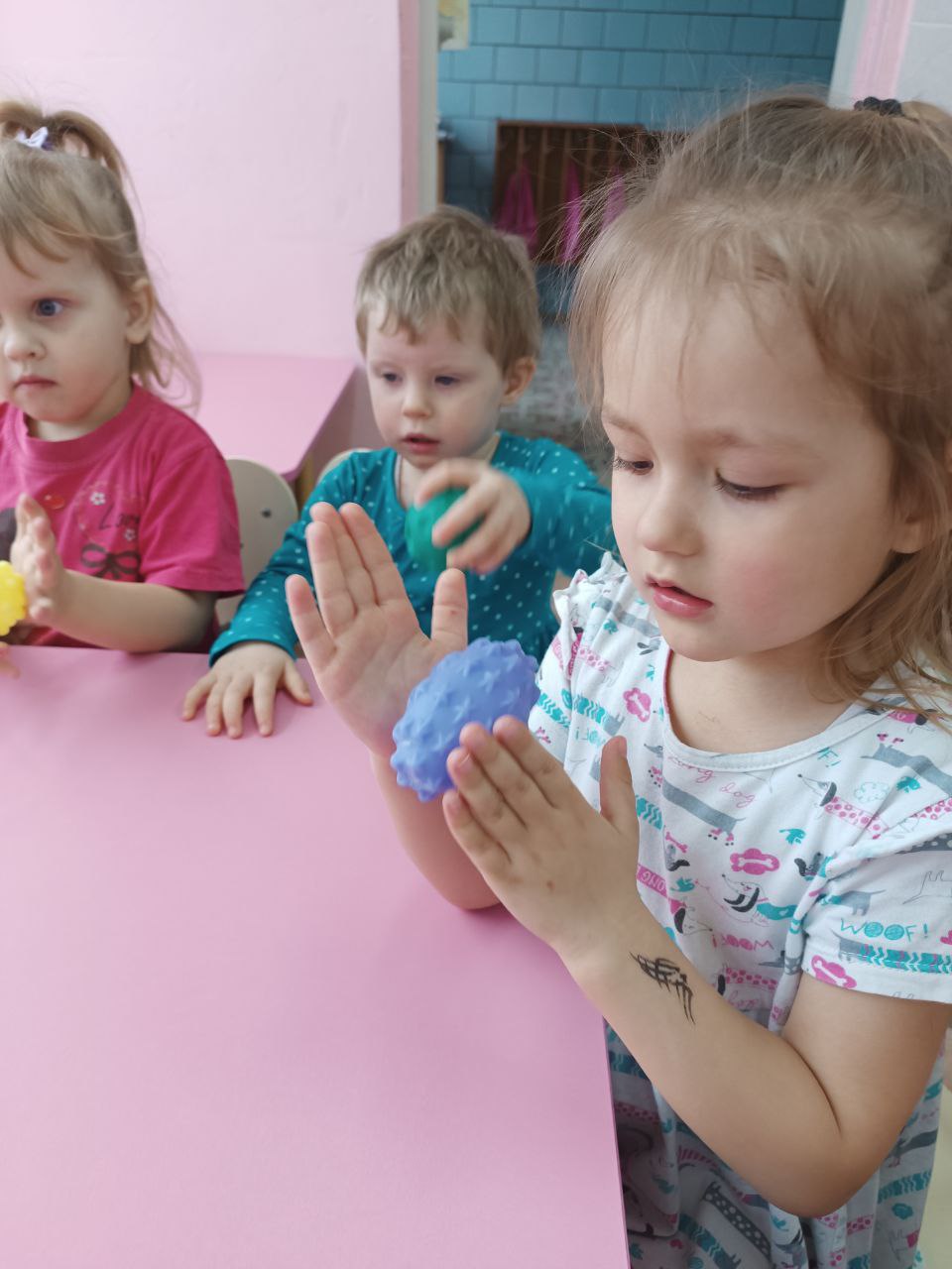 26 марта воспитанники группы "Ягодка" играли с тактильными мячиками. Игра доставила много удовольствия ребятам.