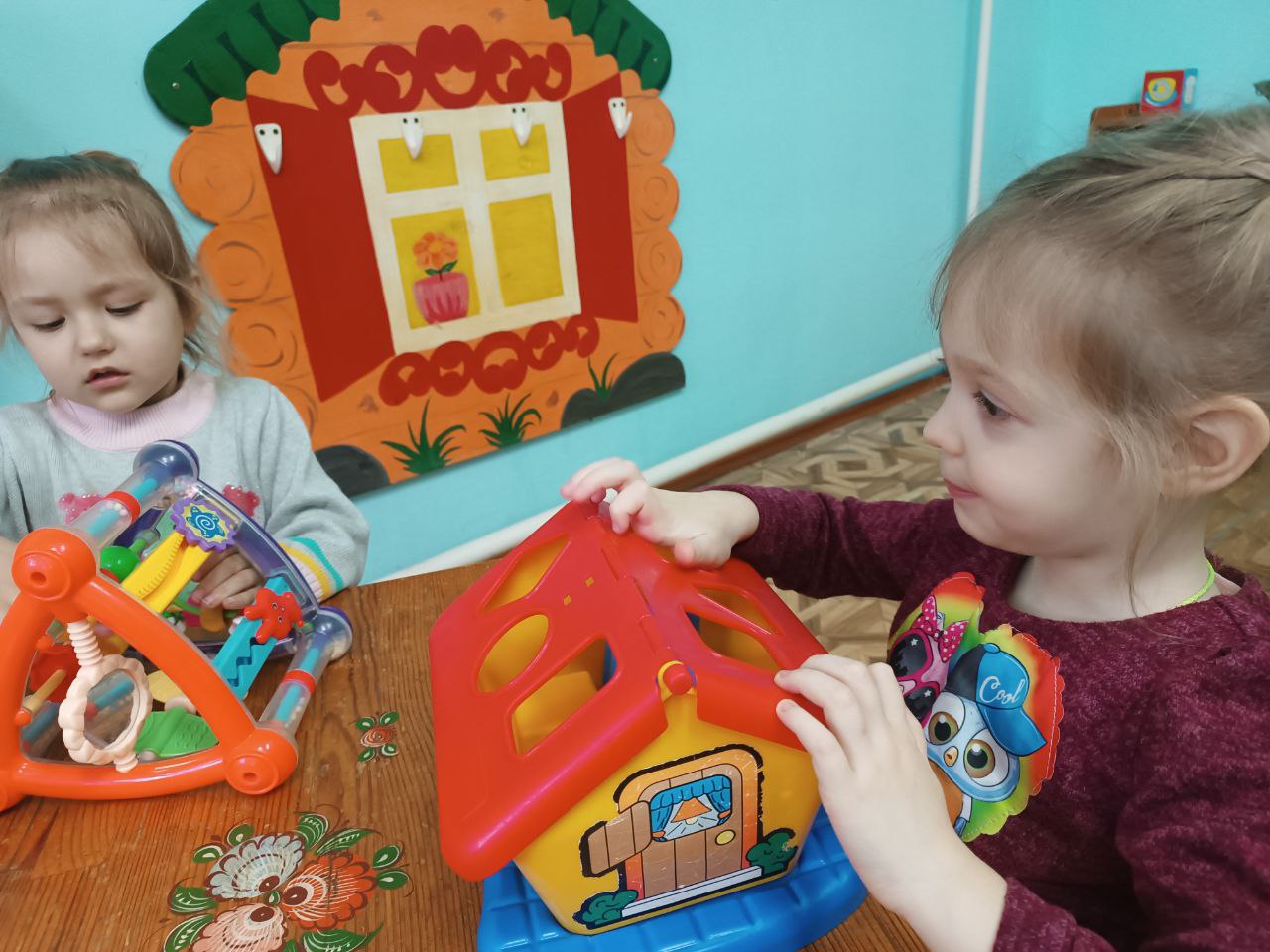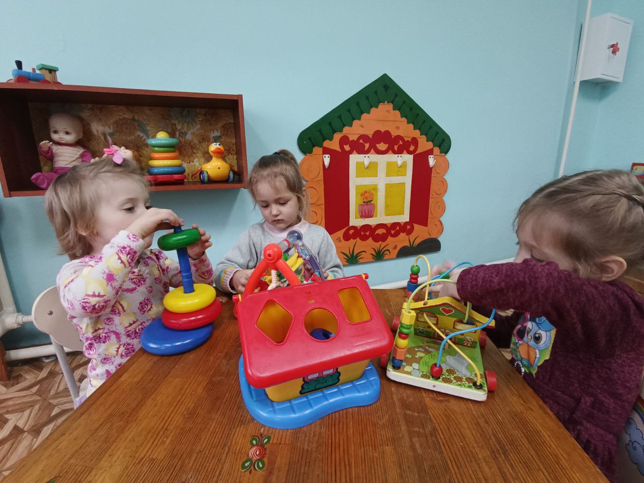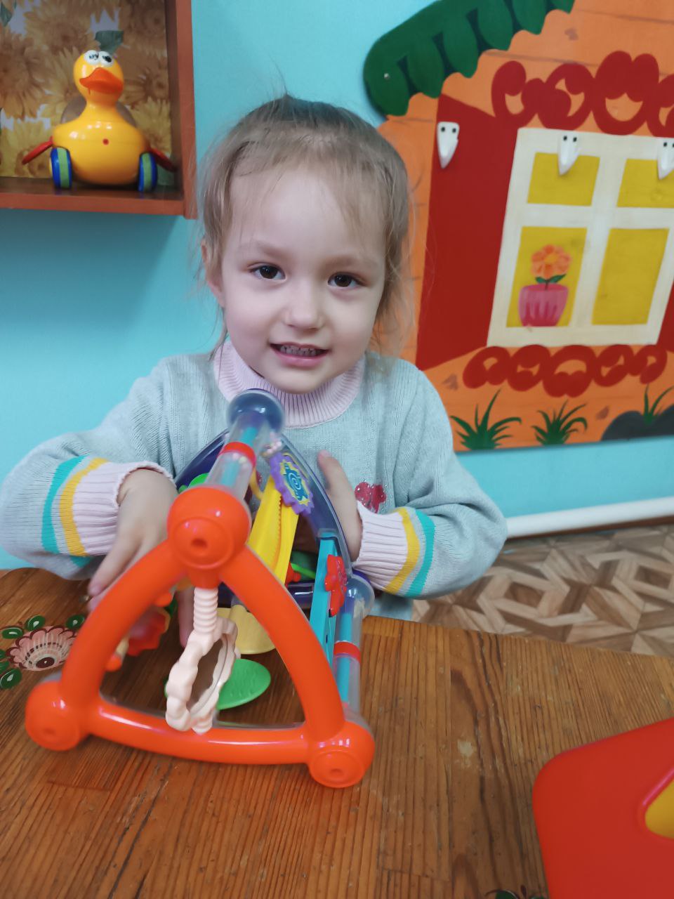 Яна Анатольевна представила малышам игрушки и объяснила, как с ними можно играть. Дети с интересом рассматривали яркие и красочные предметы, пробовали выполнять задания, которые предлагали игрушки. Они прокатывали шарики по лабиринту, подбирали фигурки по размеру и форме для сортера, изучали другие игрушки.