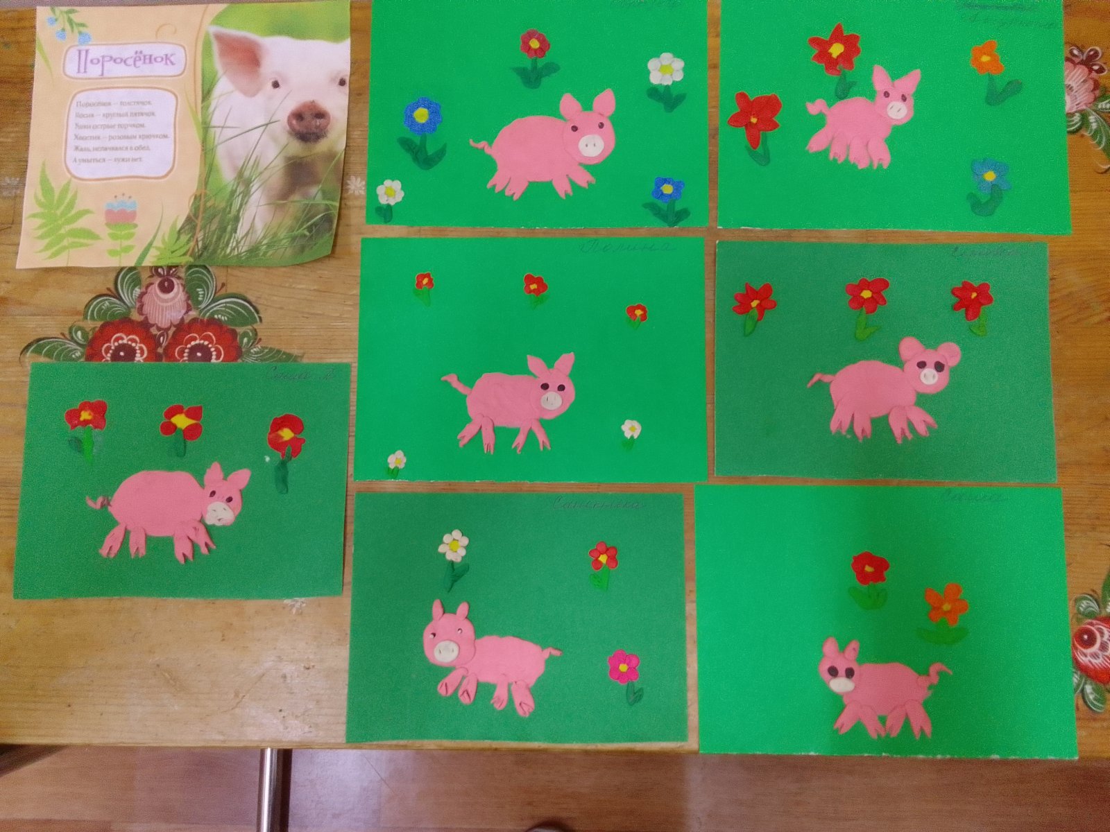 На кружке «Пластилинография» ребята создали серию картин с изображением поросенка.