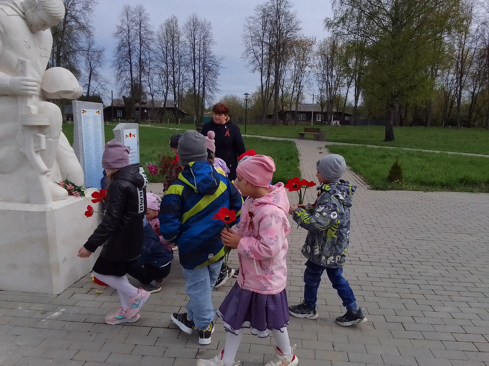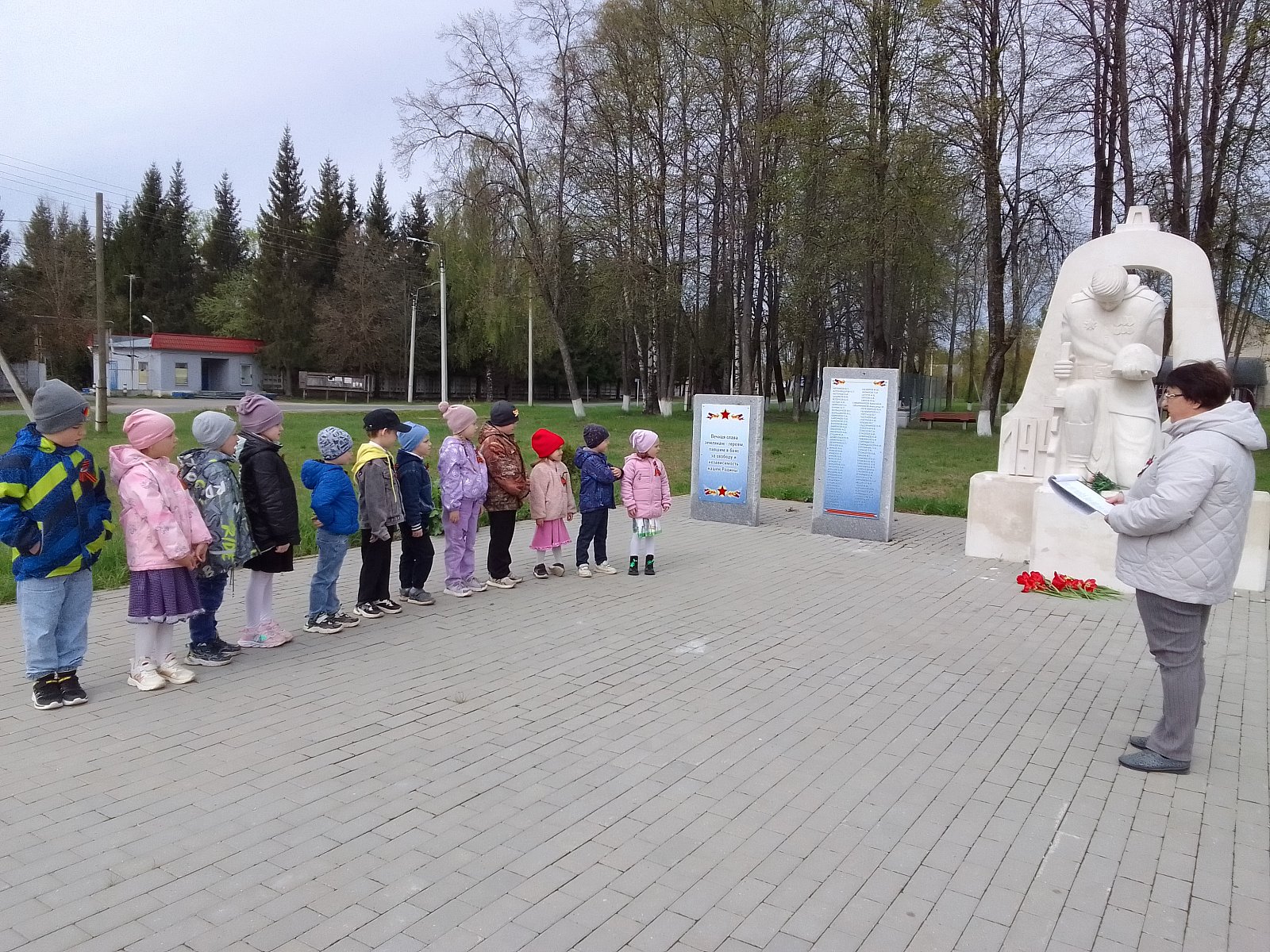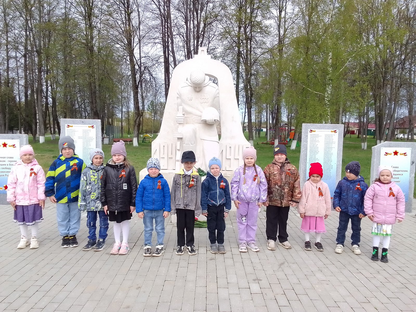 В преддверии празднования 80-летия Дня Победы, воспитанники старшей группы детского сада №10 «Радуга» вместе с воспитателями почтили память павших героев, отдав дань уважения всем солдатам, не вернувшимся с той страшной войны, всем кто погиб в боях и не дожил до сегодняшнего дня. Дети читали стихи и пели песни о Победе.