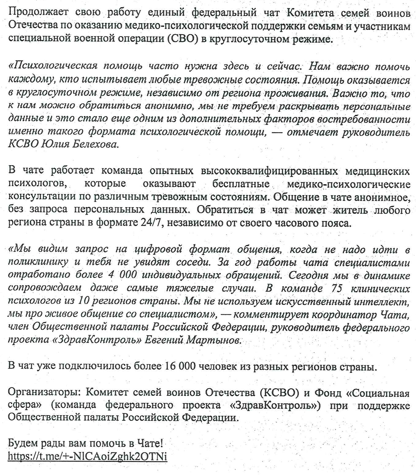 Медико-психологическая поддержка