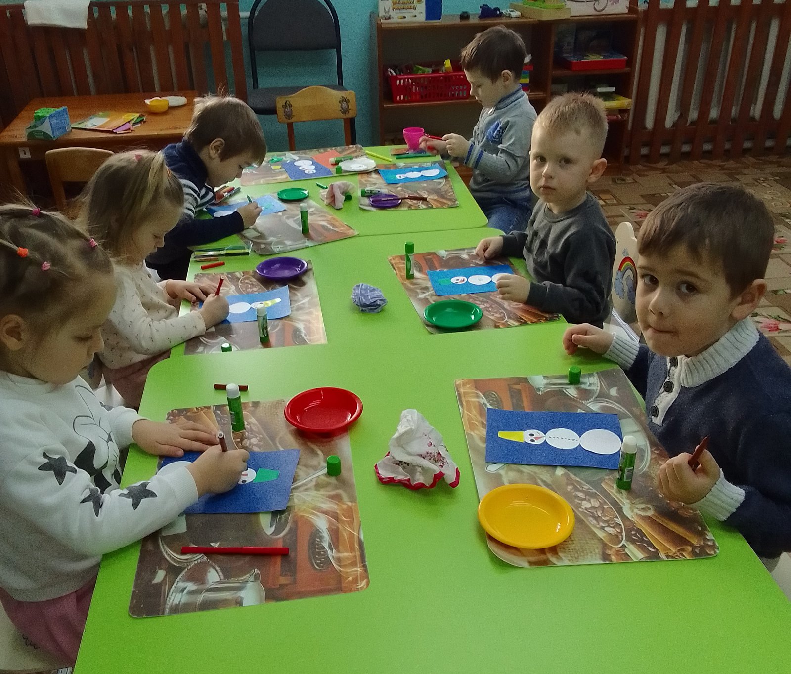 Катание на санках, игры в снежки, постройки крепости из снега, и, конечно же, упитанный Снеговик в каждом дворе с морковкой вместо любопытного носа – ну как можно не любить эту пору года? Вот и мы с нашими ребятами решили сделать снеговиков! Но снеговиков не из снега! А аппликацию! К нам в гости пришел грустный снеговик. А почему он был грустным? Да потому что он ОДИН! И мы, с ребятами решили ему помочь! Сделать снеговику друзей, веселых снеговичков!