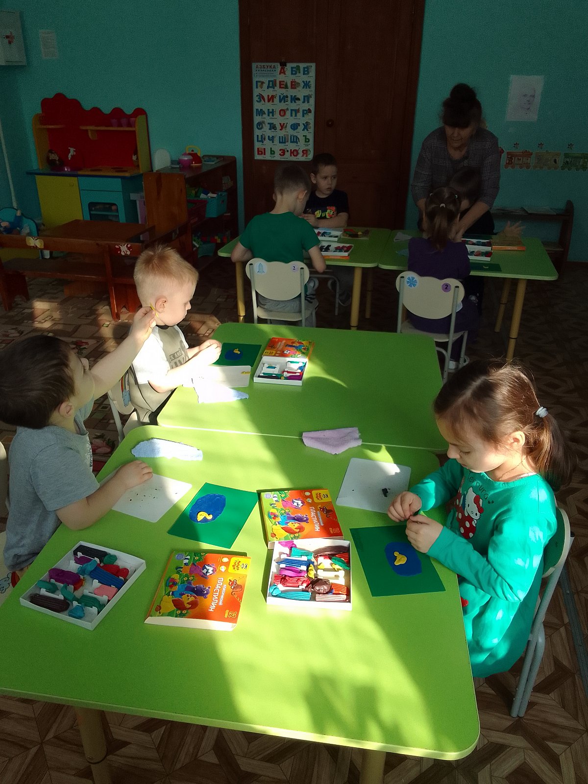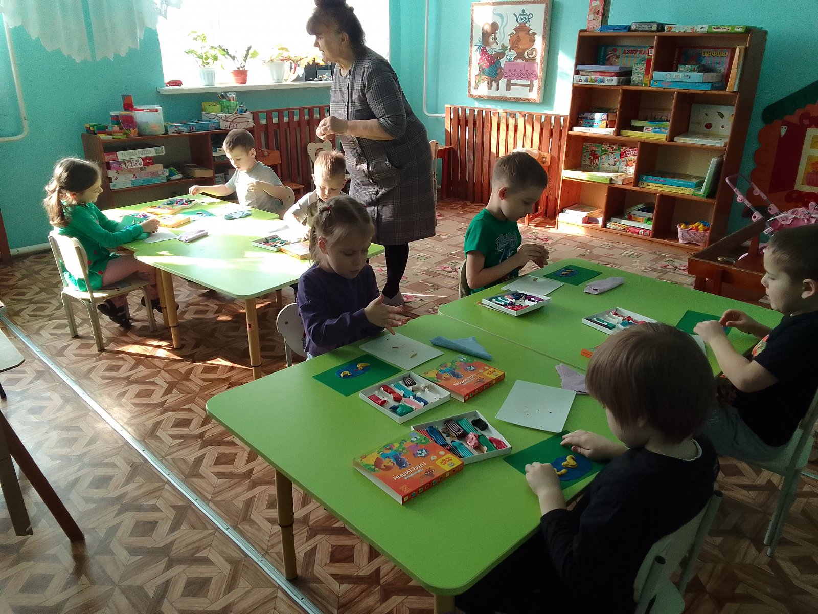 И сегодня на кружке Пластилинография дети успешно справились с созданием композиции "Утята в пруду"